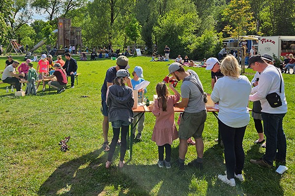 Bei sonnigem Frühlingswetter durften die Veranstalter über 50 Familien zu diesem speziellen Vatertagserlebnis begrüßen. Ein vielfältiges Programm lud zum Verweilen und Mitmachen ein. Das bunte Programm am Naabufer bot für Groß und Klein etwas. Hier konnten die Kinder ihre Väter beim Cornhole oder Leitergolf herausfordern.