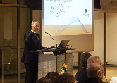 Nach der offiziellen Begrüßung durch Aufsichtsratsvorsitzenden Prof. Dr. Weber zeigte Thomas Huber, MdL und Vorsitzender des Aufsichtsrats des Kolping-Bildungswerkes Bayern, in seinem Impuls „Bildung im Wandel der Zeit“ die Herausforderungen der Zukunft für das Kolping-Bildungswerk auf.
