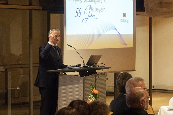 Nach der offiziellen Begrüßung durch Aufsichtsratsvorsitzenden Prof. Dr. Weber zeigte Thomas Huber, MdL und Vorsitzender des Aufsichtsrats des Kolping-Bildungswerkes Bayern, in seinem Impuls „Bildung im Wandel der Zeit“ die Herausforderungen der Zukunft für das Kolping-Bildungswerk auf.